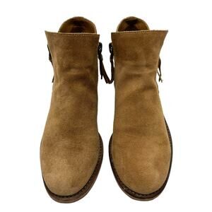 Gianni Bini A-lister Tan Suede Leather Double Zip Closure Block Heel Booties