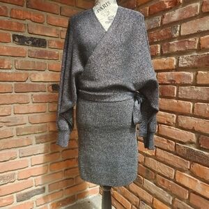 Gianni Bini Alston Metallic Tie Waist Sweater Dress Black Silver Size Large NWT