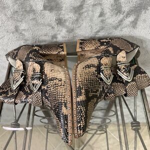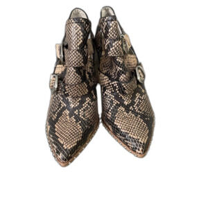 Gianni Bini Ankle Boot Size 7.5 Decie Snake Print Metal Block Heel buckles studded.