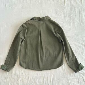 gianni bini army green military esque button up cropped jacket with big pockets, size medium