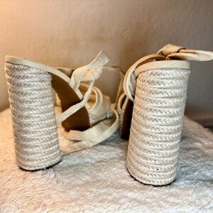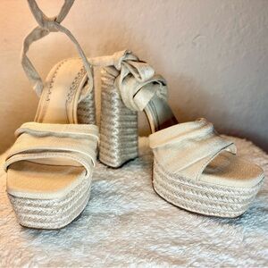 Gianni Bini Beige Lace Up Ankle Strap Platform Heels Size 9.5