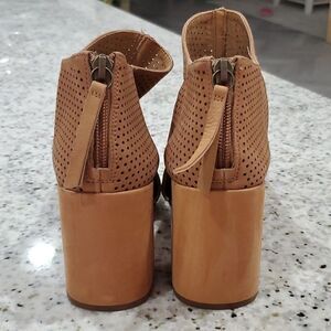 Gianni Bini Beige Peep Toe Block High Heel Zip Up Shoes Size 6 Women’s, perfect condition