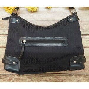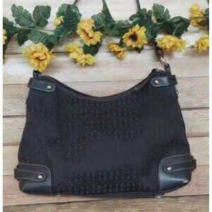 Gianni Bini Black Baguette Signature Print Leather Accent Shoulder Bag Purse