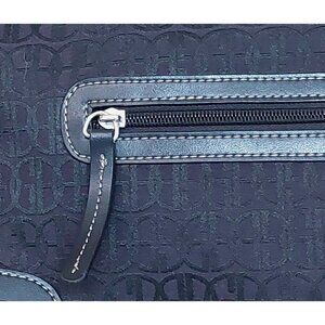 A stylish black shoulder bag with leather accents, featuring Gianni Bini's signature print and silver hardware. Perfect for any occasion. Measures 13" X 8" x 3.5" 1 Exterior & 1 Interior Pocket, 2 interior Pouches and 1 Key Clip