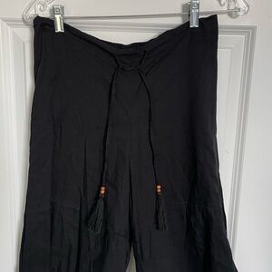 Gianni Bini Black Cotton Drawstring Tassel Pleated Wide Leg Pants Size Small - Inseam 28"