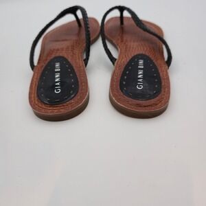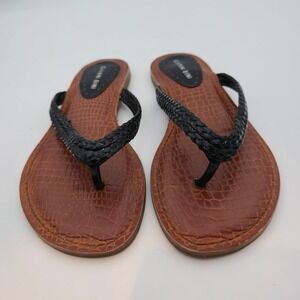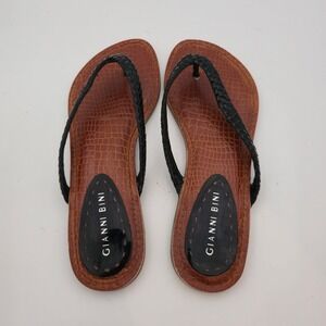 Gianni Bini Black Crocodile Embossed Braided Thong Sandals Resortware- Size 7.5M