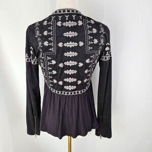Gianni Bini Black Faux Suede Cardigan Jacket Size XS Boho Embroidered