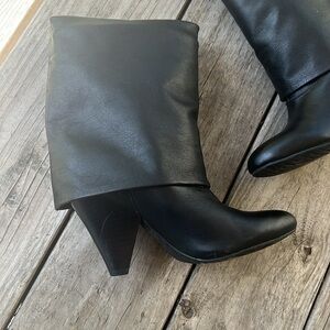 Style Keywords: leather boots, western-inspired boots, edgy chic, black tall boots, Gianni Bini shoes, fall outfit, slouch boots, cowgirl aesthetic, pointed toe boots, slouchy