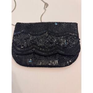 Gianni Bini Black Sequin Crossbody Bag w/Chain Strap 7x10x1" Snap Close