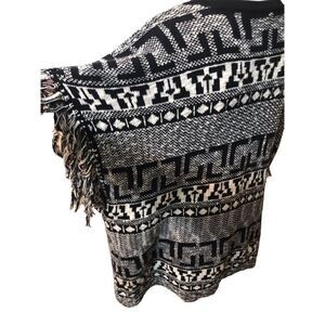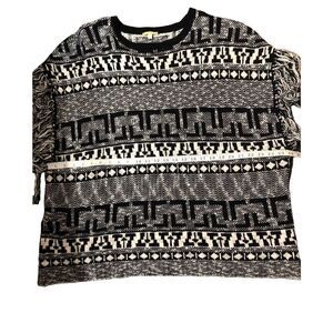 Gianni Bini Black and white Aztec oversized poncho style sweater with fringe size S.