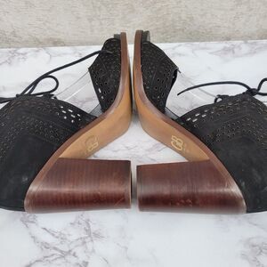 Gianni Bini Black Suede Perforated Lace-Up Heeled Sandals Women's Size 8