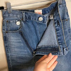 Gianni Bini Light Blue Denim High waist Asymmetrical Zip Mini Skirt, Size Small