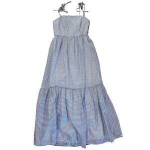 Gianni Bini Blue & White Stripes Shoulder Ties Ruffle Maxi Sundress SZ 4 NWT
