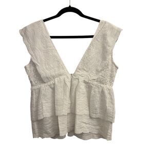 Gianni Bini Boho Eyelet Tiered Sleeveless blouse size M Double V-neck layering C