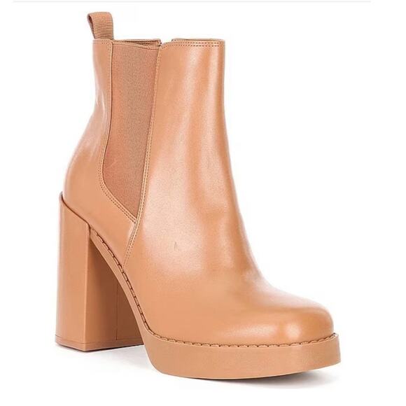 Gianni Bini Boots Tan Leather Platform Block Heel Y2K Style Chelsea Boots 8.5