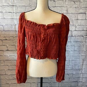 Gianni Bini - Brick Rylee Square Neck Long Sleeve Blouse XL NWT