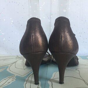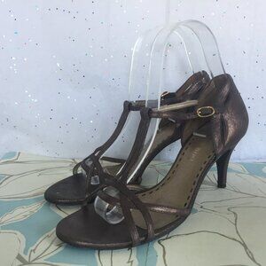 Gianni Bini Bronze Metallic Leather T strap Sandal - Size 6.5 Y2K Dressy Heels