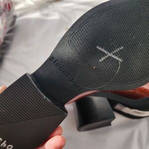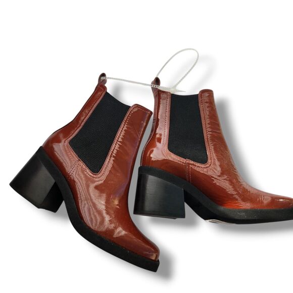 Stylish brown ankle boots with a sleek design. Features a chunky heel and elastic side panels.