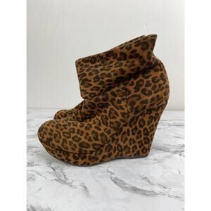 Gianni Bini Brown Leopard Print Slouch Wedge Ankle Boots 7.5 women's