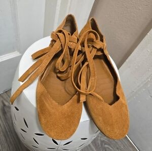 Gianni Bini Brown Strapped Leather Ankle Flats Size 7.5M