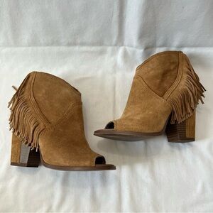 Gianni Bini Brown Suede Peep Toe Fringe Booties