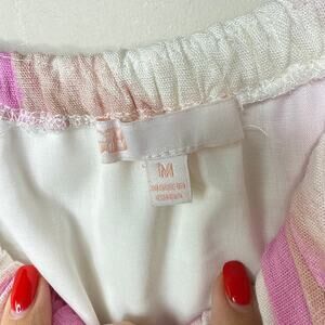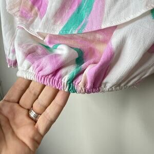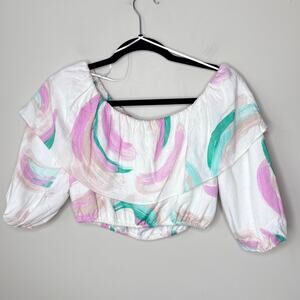 Gianni Bini Brushstroke Off-Shoulder Ruffle Crop Top Puffy Sleeves Size Medium