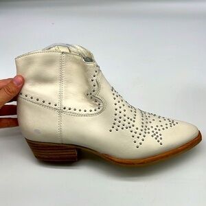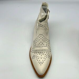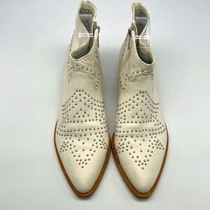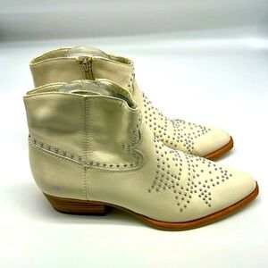Gianni Bini - Brycin White Leather Western Silver Studded Ankle Booties Size 8