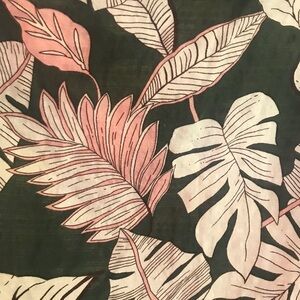 Gorgeous Gianni Bini Button Up High Low Leafy Dress. Background color is deep green with accents of white, pink and deep burgundy. Cute turn down detail at neck. Straps are wide enough to wear a bra. Zips up the back with hook and eye closure. 50% cotton, 50% rayon but feels like linen. Center front length is 34”, center back 41”. Chest is 17 across the front from seam to seam. Waist is 14 across front, seam to seam. Size xs