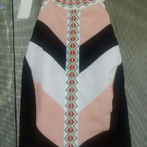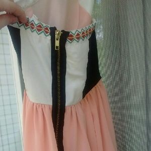 Gianni Bini cocktail dress from Dillard's. Only worn twice. Aztec design, falls about an inch above the knees without heels. Super cute & light weight. Mauve/peach color. Backless. Juniors xs. Fits like women's small. Zippered back. Open to offers.