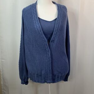 KEYWORDS: Gianni Bini Cable Knit Cardi set, Gianni Bini Cable Knit Cardigan set, Sweater Set, Cable Sweater, Blue Cardigan, Blue Sweater