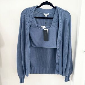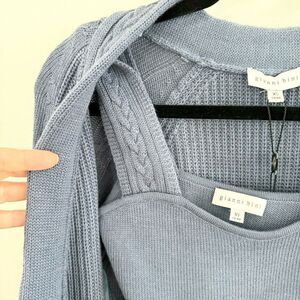 Gianni Bini Cable Knit Cardigan Set Blue XS