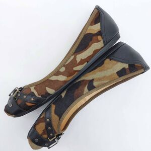 Gianni Bini Camo Haircalf Ballet Flats Women’s Sz 8M Leather Upper Buckle Studs