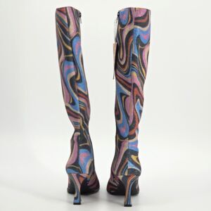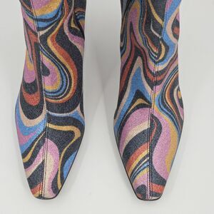 Gianni Bini Cat Walk 2 Glitter Mod Swirl Print Snip Toe Tall Knee High Boots 70s Retro disco