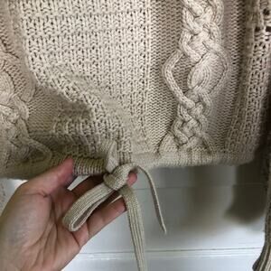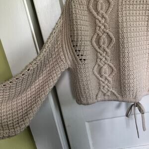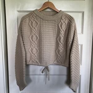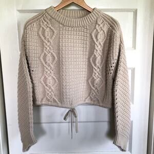 Gianni Bini Chunky Cable Knit Cropped Sweater Drawstring Hem Beige M Cottagecore