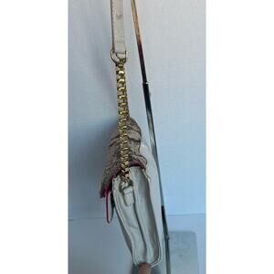 Gianni Bini Contrast Snakeskin Effect Envelope Flap Pink Bone Crossbody Purse