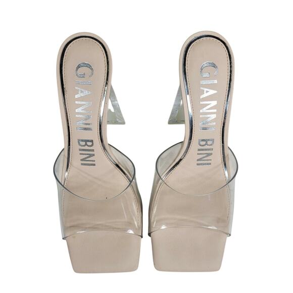 Gianni Bini Cream Caylor Clear Patent Square Toe Lucite Heels Size 9.5M NWOT. Elevate your style with these chic cream heels from Gianni Bini, featuring a sleek mule design and a contemporary square toe. The transparent strap adds a touch of modern elegance, while the comfortable heel height ensures all-day wearability. Perfect for any occasion, these versatile heels are a must-have addition to your wardrobe. Synthetic Outsole & Vinyl Upper . Square Toe . Slip On Design . Memory Foam Sock . Synthetic Lining . 3.94” Triangle Block Heels .