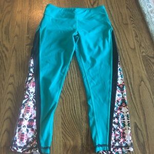 Blue Gianni Bini cropped leggings, NWOT. Size S. Blue with pattern and black part is mesh.