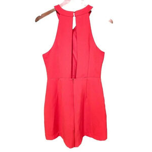 Gianni Bini Cross Halter Neck Romper in Orange. Size S / Small. Features cross halter neck, sleeveless, open back, and hidden back zipper closure. Style NJ72501B. 100% Polyester. NWT / New with tags.