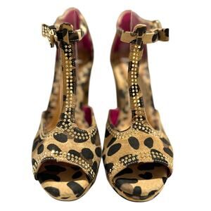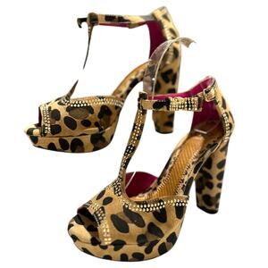 Gianni Bini DAY DREAM Leopard Print T-strap Peep Toe Platform Heels Size 6M