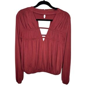This relaxed red blouse by Gianni Bini features long sleeves and stylish cut-out details, offering a chic and versatile look for any occasion.