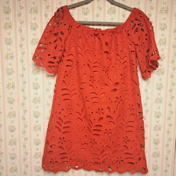 This gorgeous Gianni Bini Dayton dress is perfect for any occasion. The vibrant poppy red color and fun, original retro look make it a must-have for any fashion-forward woman. The dress features short kimono sleeves, an off-the-shoulder neckline, and a pullover closure for easy wear. The A-line style and knee-length cutout design add a touch of sophistication to the dress, while the fully lined under layer and mesh-like overlay provide comfort and practicality. The dress is made of high-quality polyester material with embroidered accents and is perfect for travel, weddings, parties, cocktails, or even casual and formal occasions.
