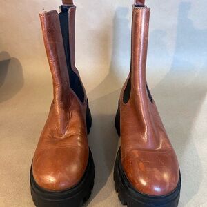 Gianni Bini Down-Town Brown Genuine Leather Chlesea Sole Platform Boots US 10 M