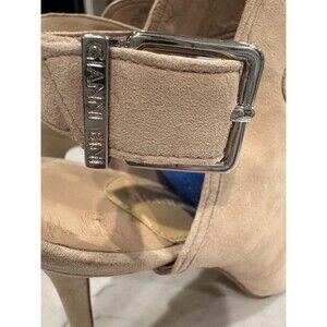 Gianni Bini Ecru Suede Peep Toe Heeled Booties Sz 8.5