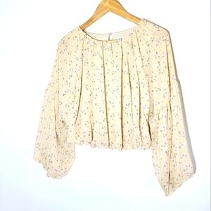Gianni Bini Floral Print Round Neck Long Sleeves Balloon Blouse Women's Size M
