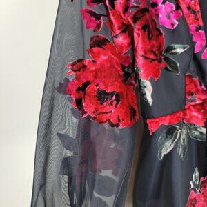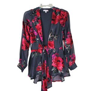 Gianni Bini Floral Sheer Velvet Blouse Open Front Tie