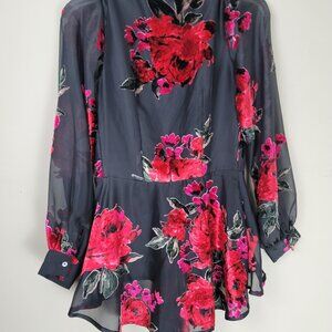 Style Tags: Western, Colorful, Feminine, Artsy, Contemporary, Flowing, Airy, All Season, Versatile, Lightweight, Breathable, Floral Print Blouse, Size S Blouse, Classy, Packable, Gianni Bini Sheer Blouse, Gianni Bini Black Sheer Floral Blouse, Sexy, layer, Camisa malla, floreada, Floral Sheer Blouse,
