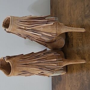 Gianni Bini Fringe Tan Ankle Heeled Boots size 9.