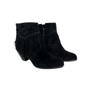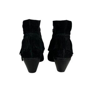 Gianni Bini Fringed Black Suede Ankle Booties Size 6.5 Western Boho Cowgirl