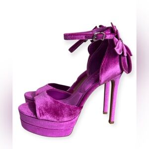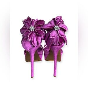 Vibrant fuchsia heels with floral accents. Perfect for special occasions.