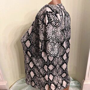Gianni Bini GB. Sz XS. Stretch. Reptile Print. Short Sleeve. Black Gray. USA. Machine wash. Shoulder to hem 21". Sleeve 6.5". Bust 17.5/35". Side slits. Poly/spandex.
